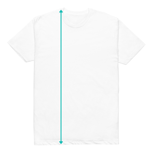 To measure the length, lay out the shirt on a flat surface and measure the distance from the highest point of the shoulder down to the t-shirt’s bottom seam.